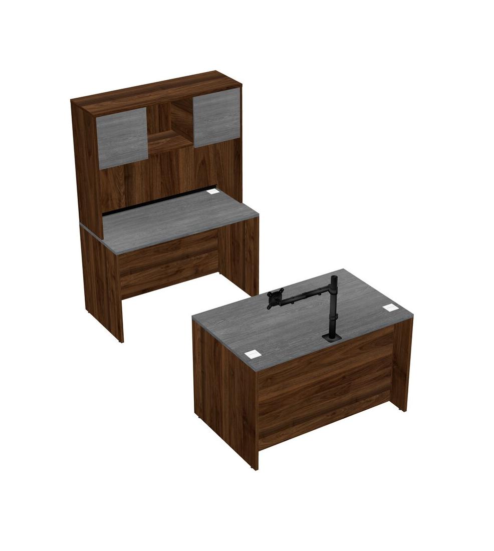 Office Parallel Desk Credenza Desk + Hutch + Monitor Arm (single Arm)