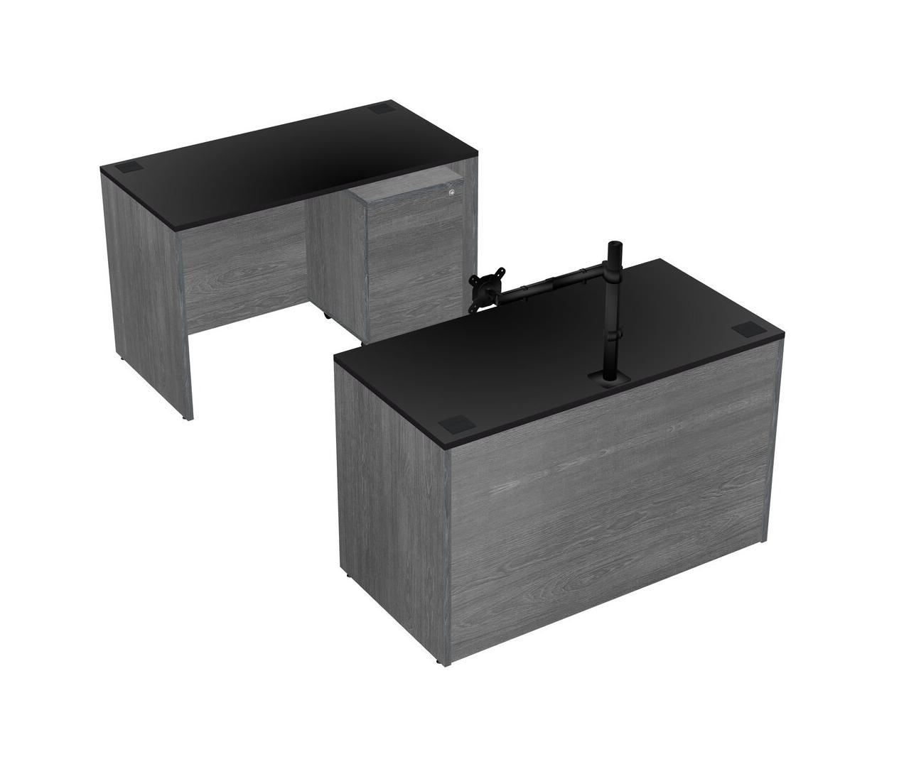 Office Parallel Desk Credenza Desk + Wooden Mobile Drawers + Monitor Arm (single Arm)