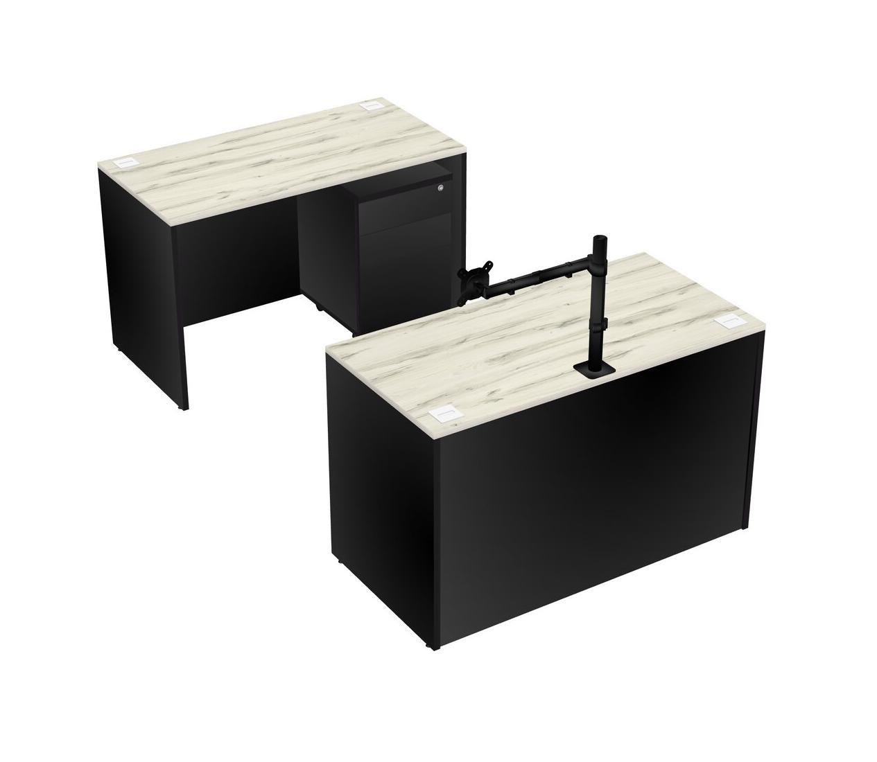 Office Parallel Desk Credenza Desk + Wooden Mobile Drawers + Monitor Arm (single Arm)