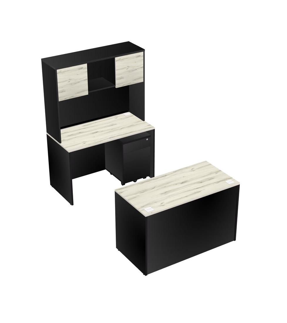Office Parallel Desk Credenza Desk + Wooden Mobile Drawers + Hutch