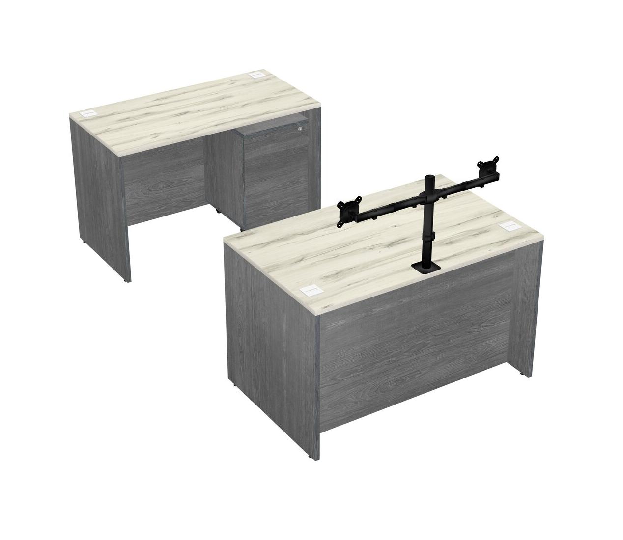 Office Parallel Desk Credenza Desk + Wooden Mobile Drawers + Monitor Arm (double Arms)