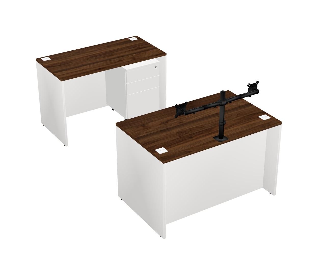 Office Parallel Desk Credenza Desk + Wooden Mobile Drawers + Monitor Arm (double Arms)