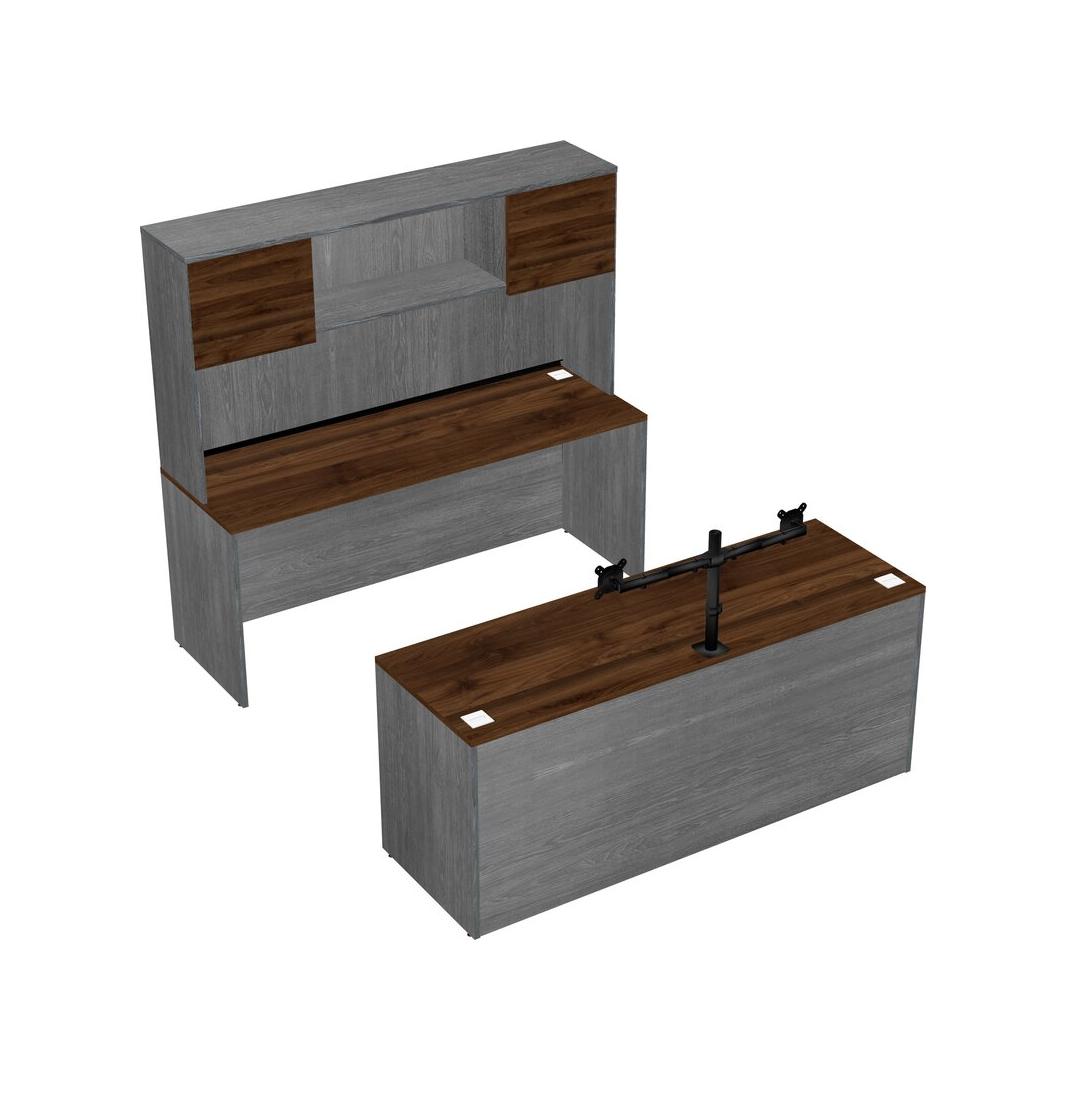 Office Parallel Desk Credenza Desk + Hutch + Monitor Arm (double Arms)