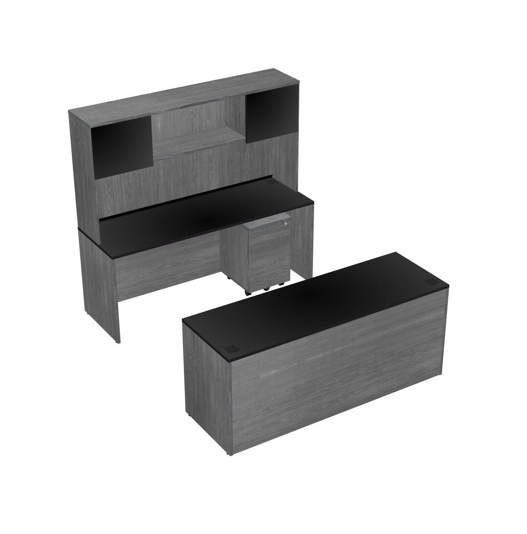 Office Parallel Desk Credenza Desk + Wooden Mobile Drawers + Hutch