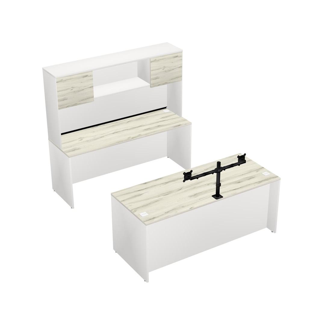 Office Parallel Desk Credenza Desk + Hutch + Monitor Arm (double Arms)