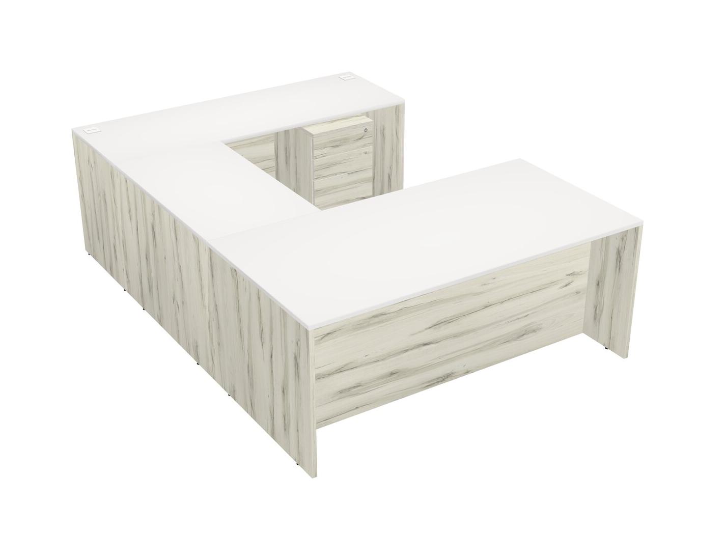 Office U-shaped Desk Credenza Desk + Wooden Mobile Drawers