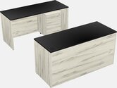 Office Parallel Desk Credenza Desk + Wooden Mobile Drawers