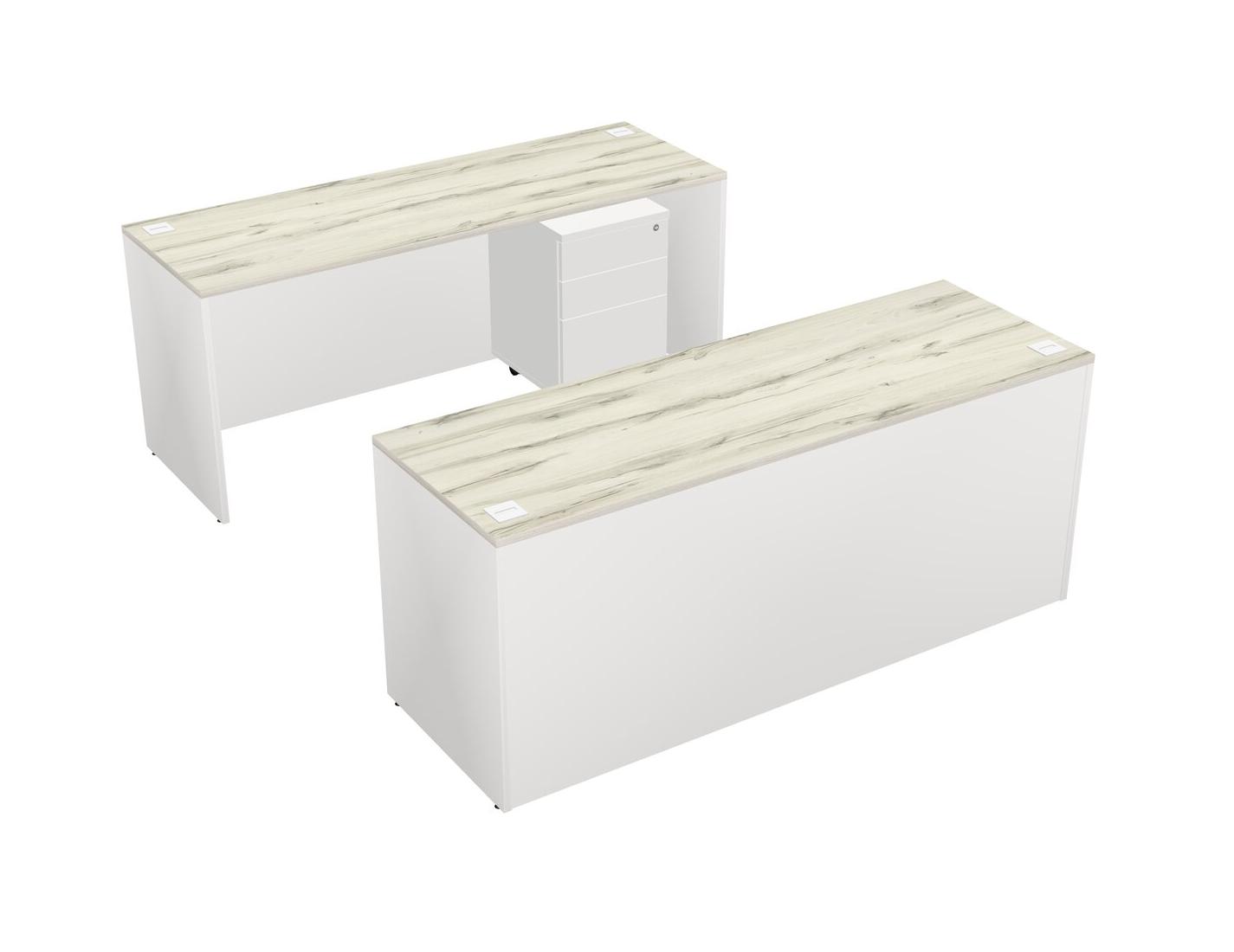 Office Parallel Desk Credenza Desk + Wooden Mobile Drawers