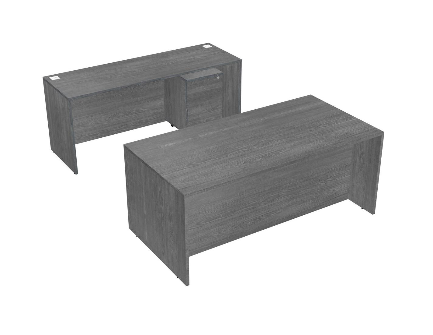 Office Parallel Desk Credenza Desk + Wooden Mobile Drawers