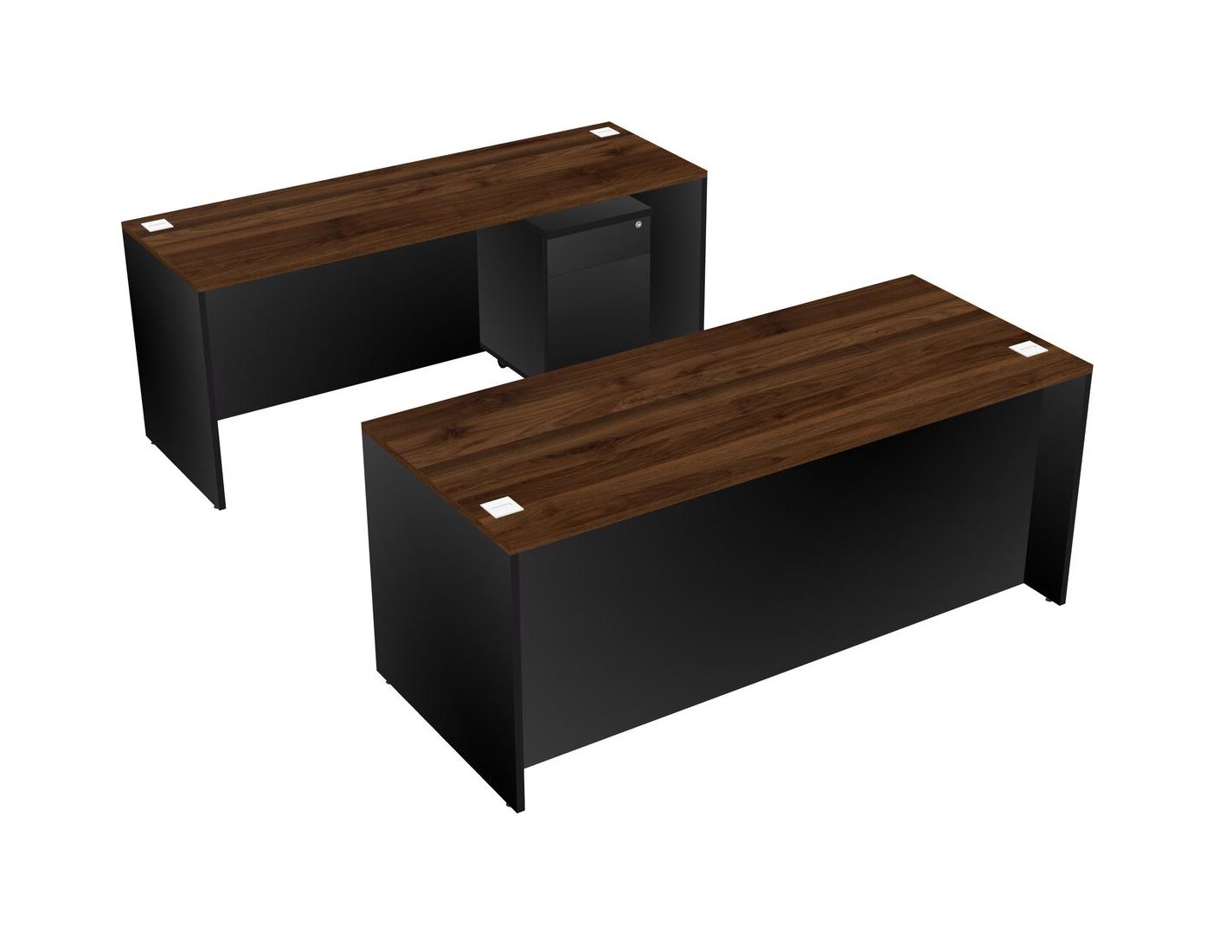 Office Parallel Desk Credenza Desk + Wooden Mobile Drawers