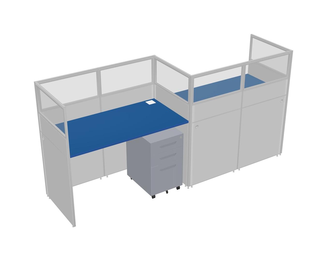 Prism Blue Rectangular Cubicle Workstations For 2 - Zigzag Formation + Grey Metal Mobile Drawers