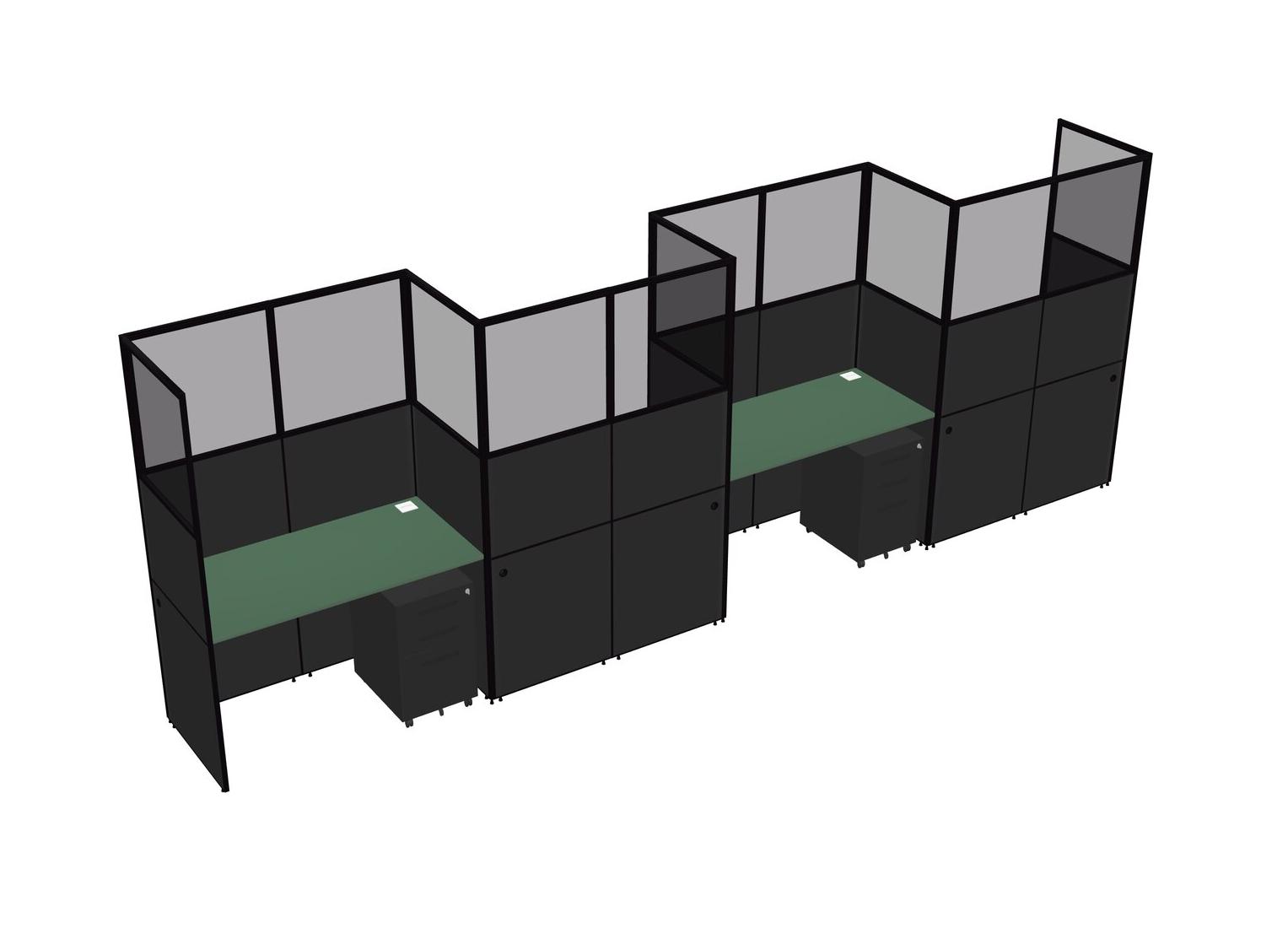 Green Rectangular Cubicle Workstations For 4 - Zigzag Formation + Black Metal Mobile Drawers