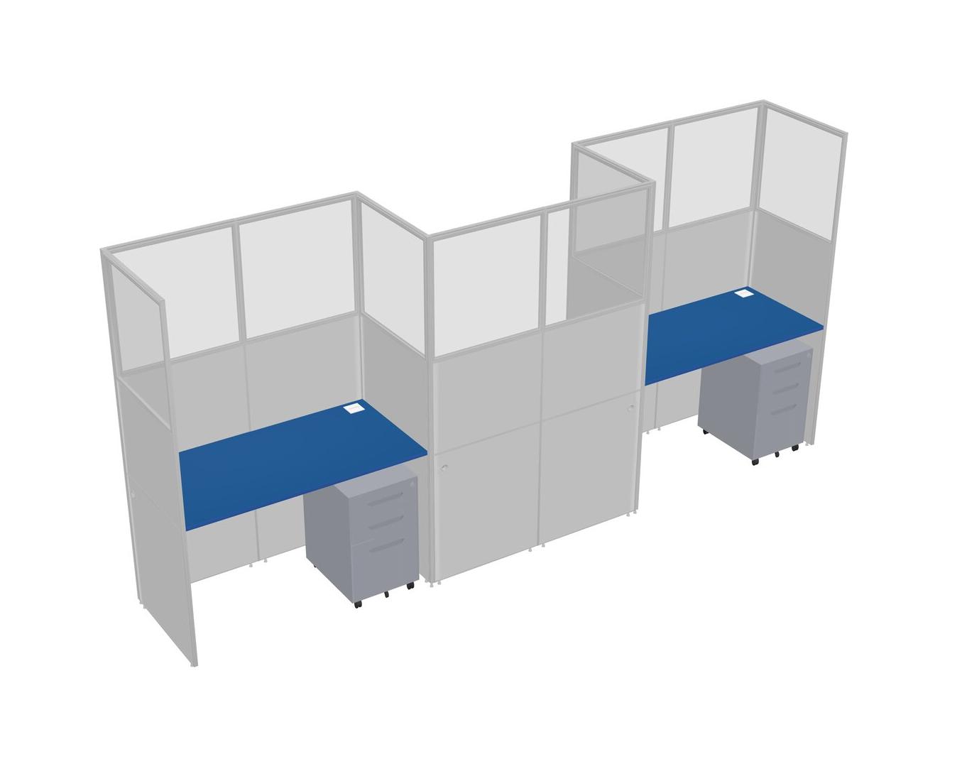 Prism Blue Rectangular Cubicle Workstations For 3 - Zigzag Formation + Grey Metal Mobile Drawers