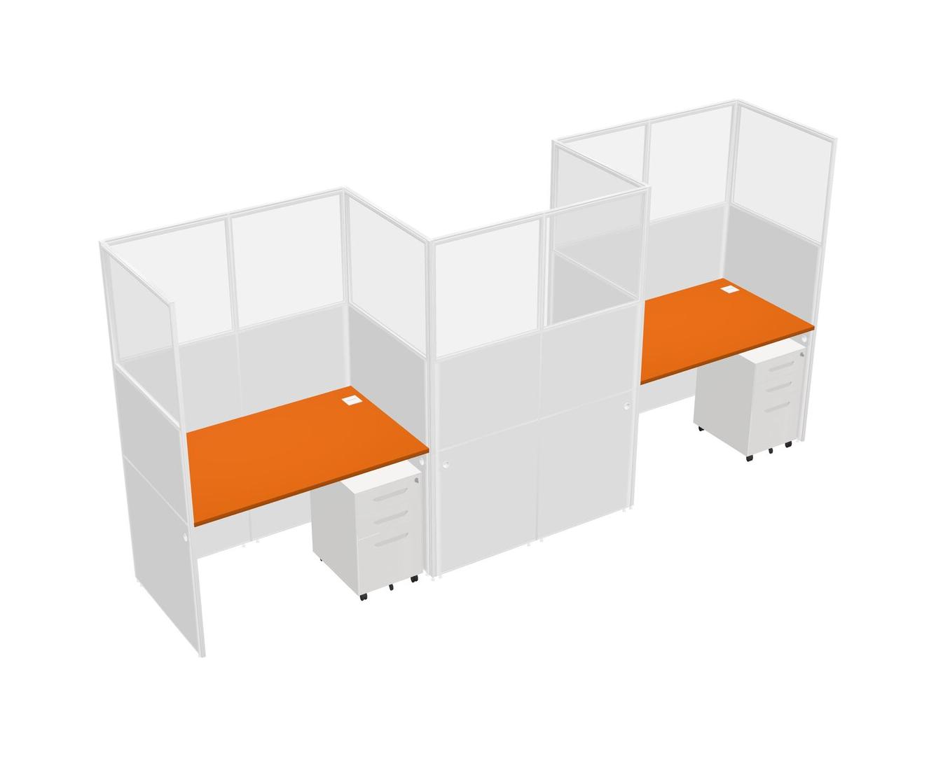 Orange Rectangular Cubicle Workstations For 3 - Zigzag Formation + White Metal Mobile Drawers