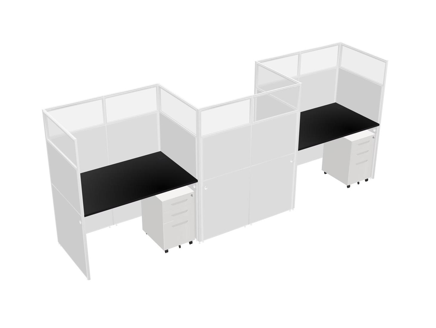 Black Rectangular Cubicle Workstations For 3 - Zigzag Formation + White Metal Mobile Drawers