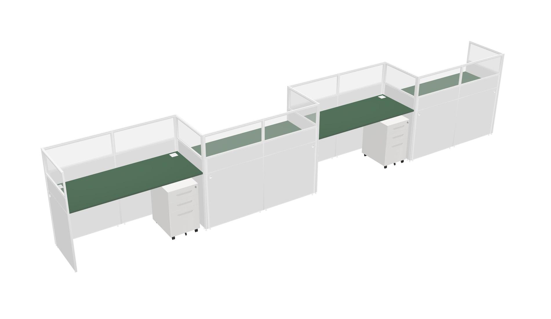 Green Rectangular Cubicle Workstations For 4 - Zigzag Formation + White Metal Mobile Drawers