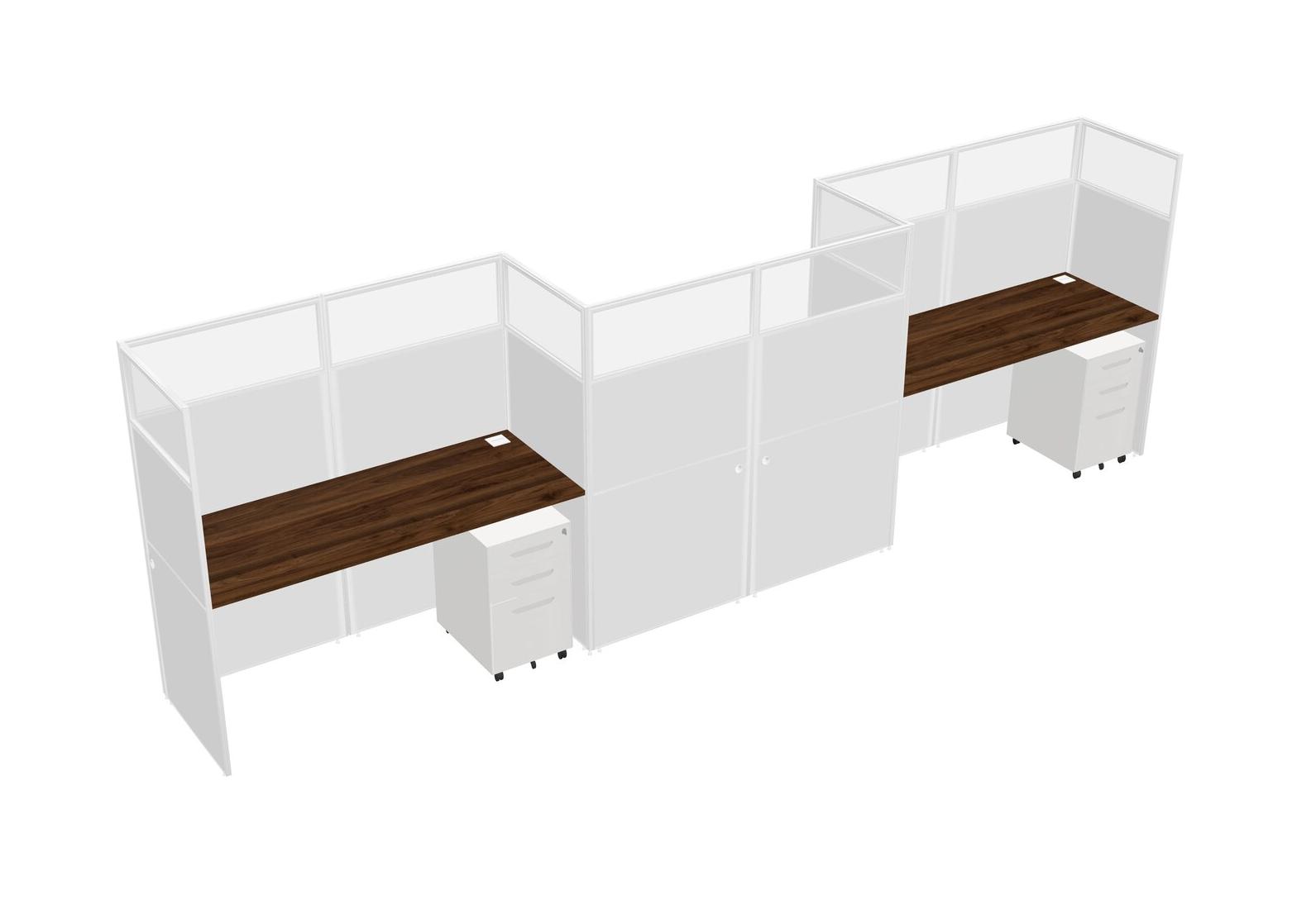 Columbia Walnut Rectangular Cubicle Workstations For 3 - Zigzag Formation + White Metal Mobile Drawers