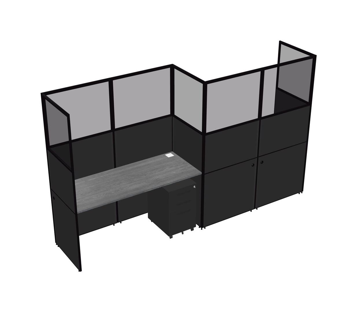Grey Rectangular Cubicle Workstations For 2 - Zigzag Formation + Black Metal Mobile Drawers