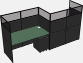 Green Rectangular Cubicle Workstations For 2 - Zigzag Formation + Black Metal Mobile Drawers