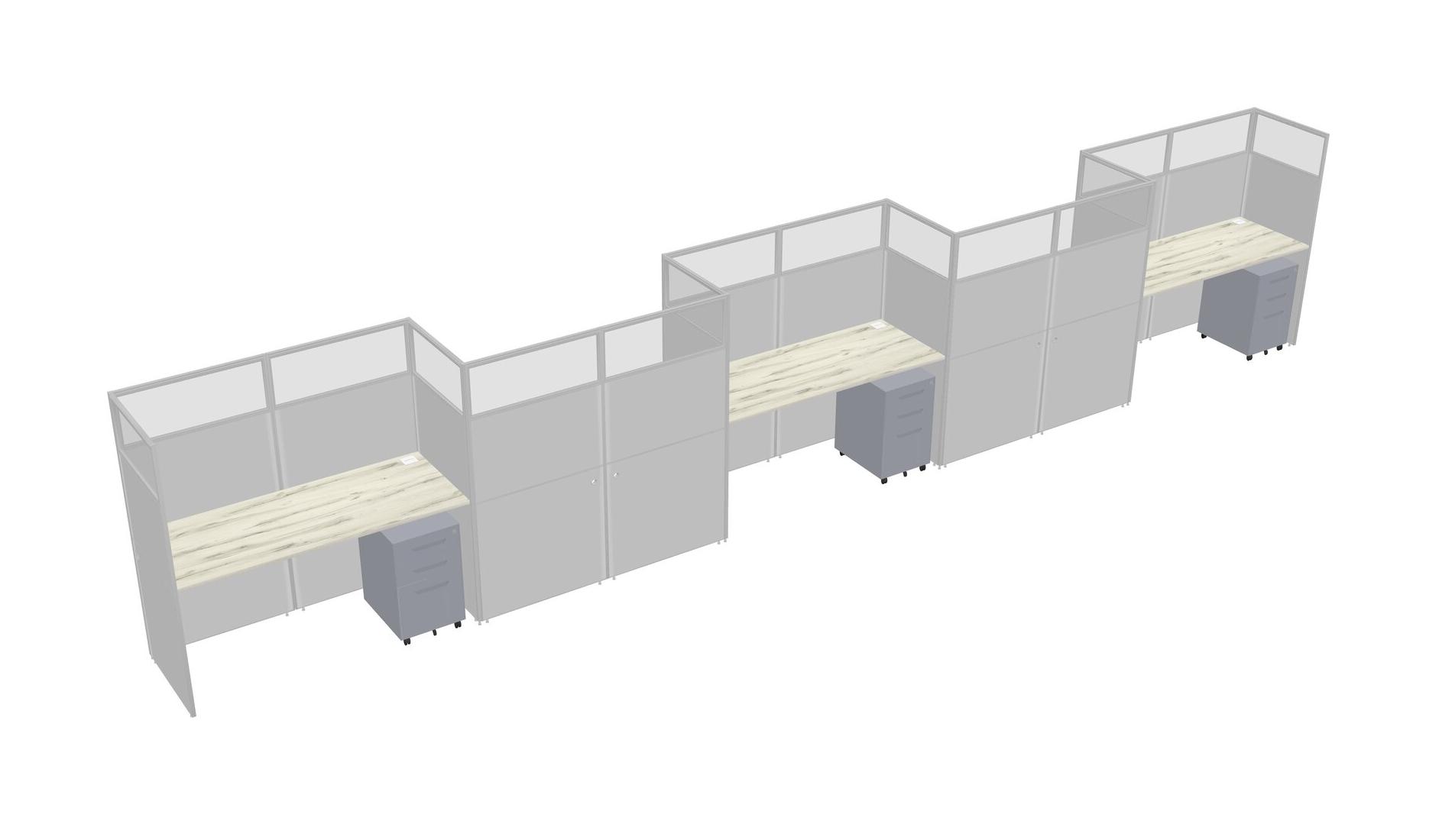 Heinne Holz Rectangular Cubicle Workstations For 5 - Zigzag Formation + Grey Metal Mobile Drawers