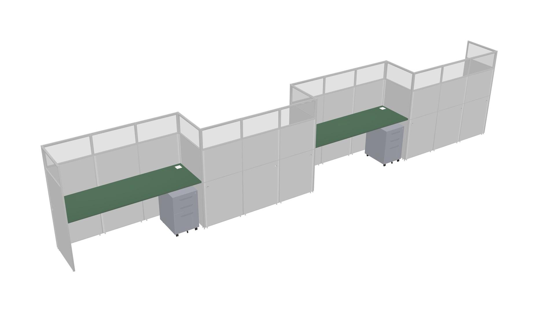 Green Rectangular Cubicle Workstations For 4 - Zigzag Formation + Grey Metal Mobile Drawers