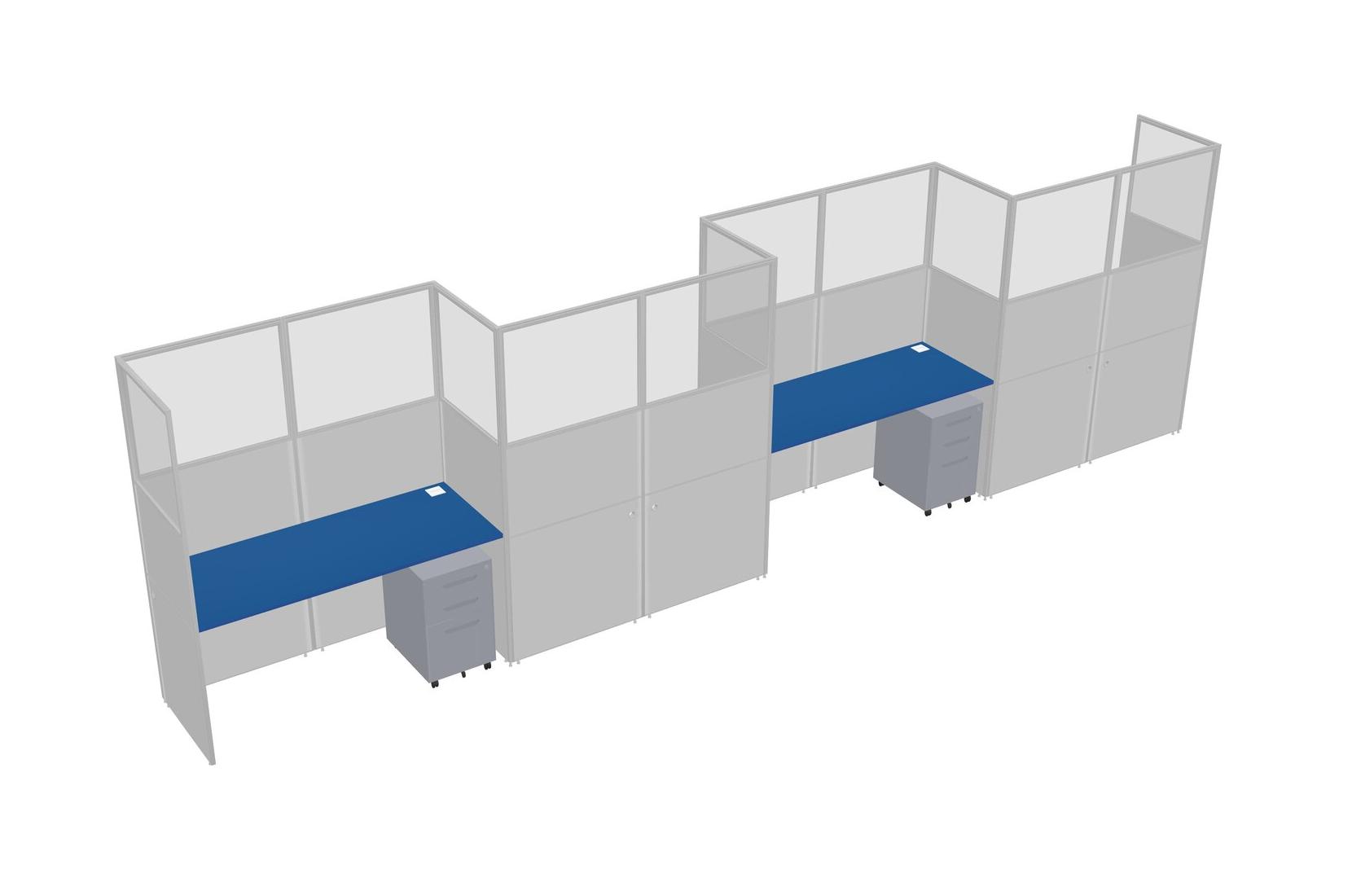 Prism Blue Rectangular Cubicle Workstations For 4 - Zigzag Formation + Grey Metal Mobile Drawers