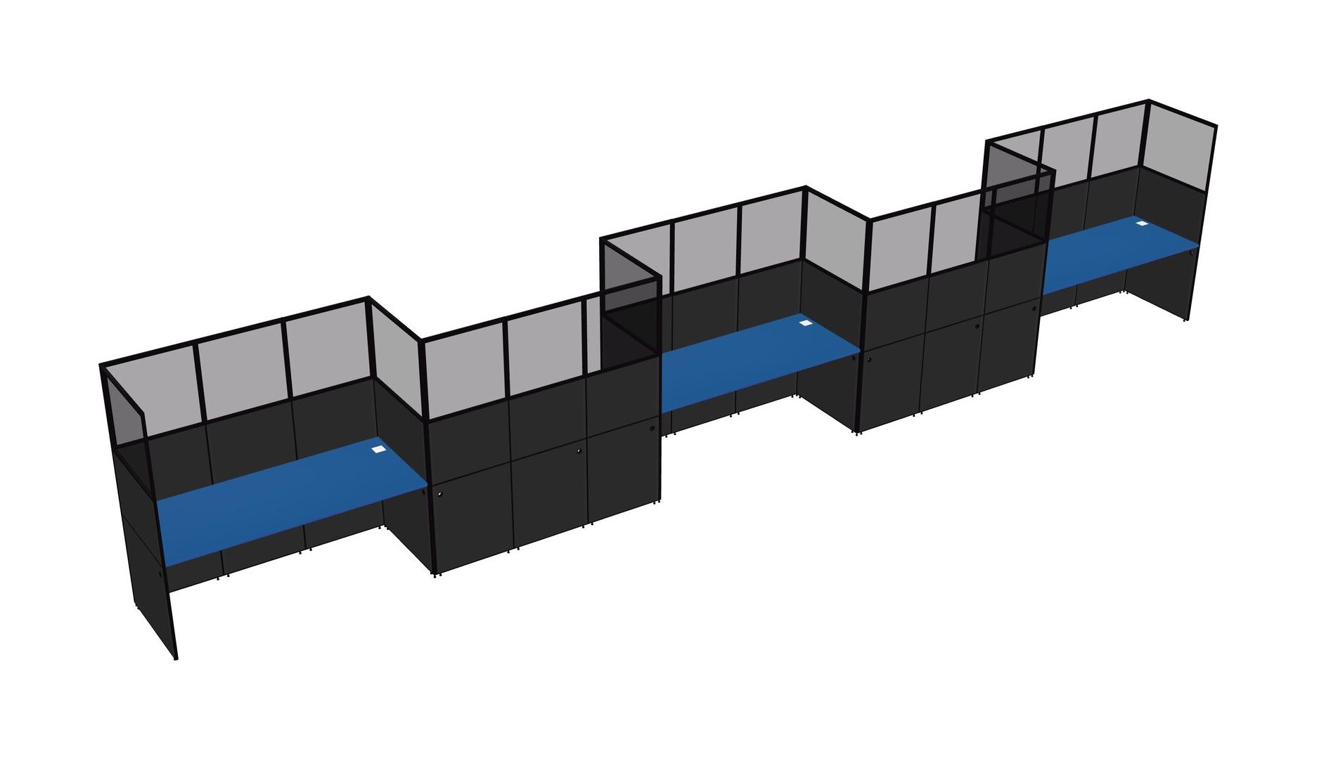 Prism Blue Rectangular Cubicle Workstations For 5 - Zigzag Formation