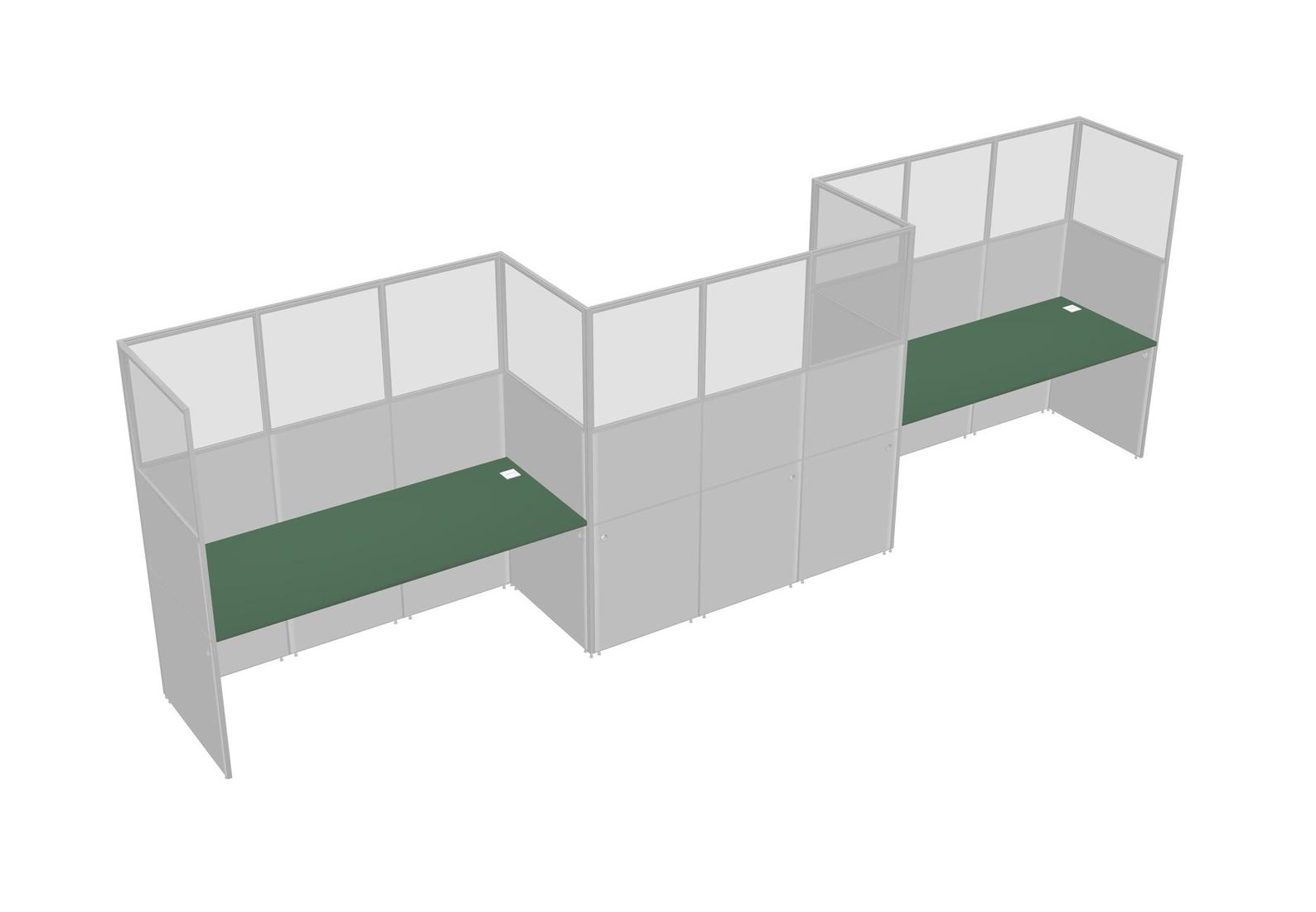 Green Rectangular Cubicle Workstations For 3 - Zigzag Formation