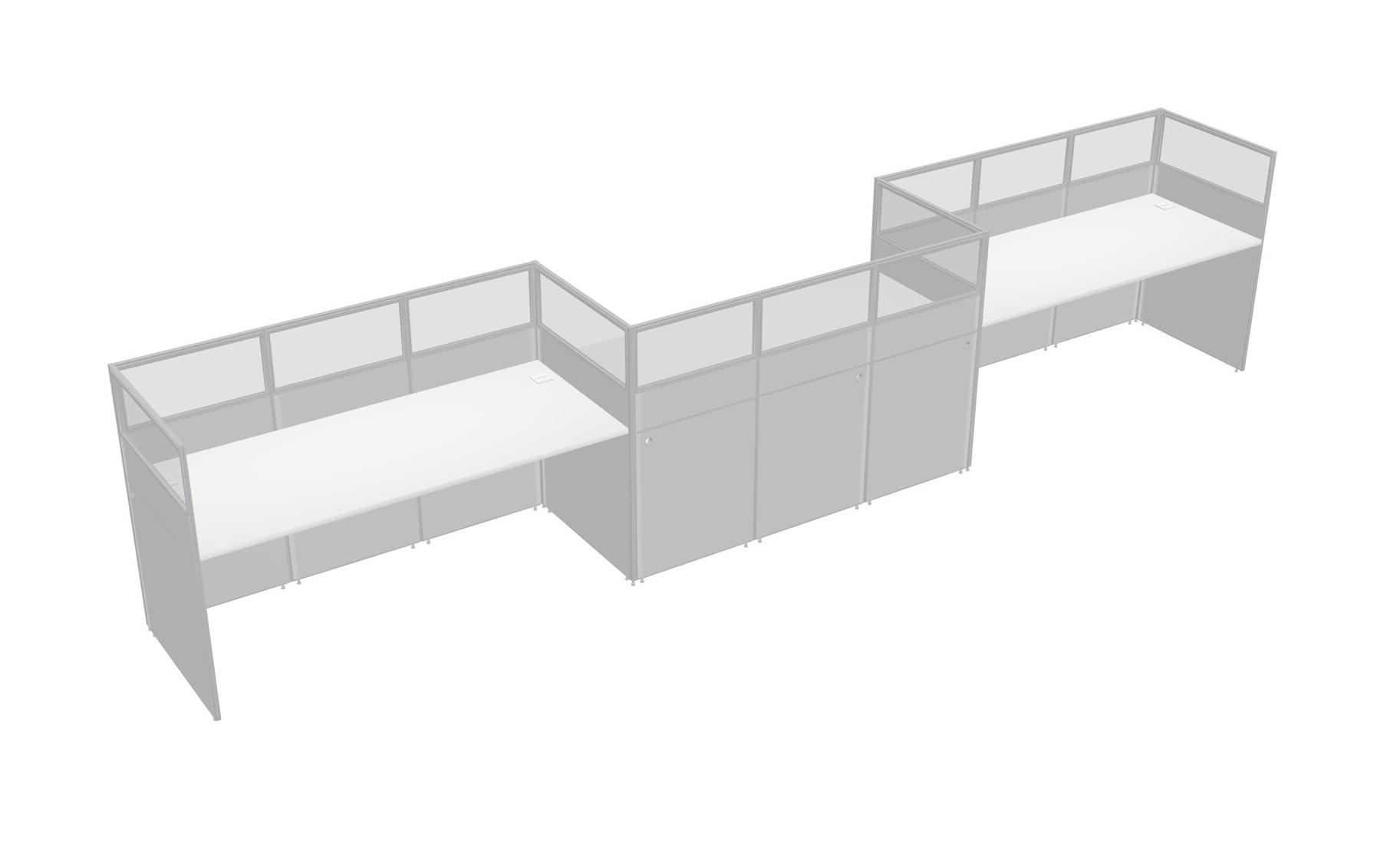 White Rectangular Cubicle Workstations For 3 - Zigzag Formation