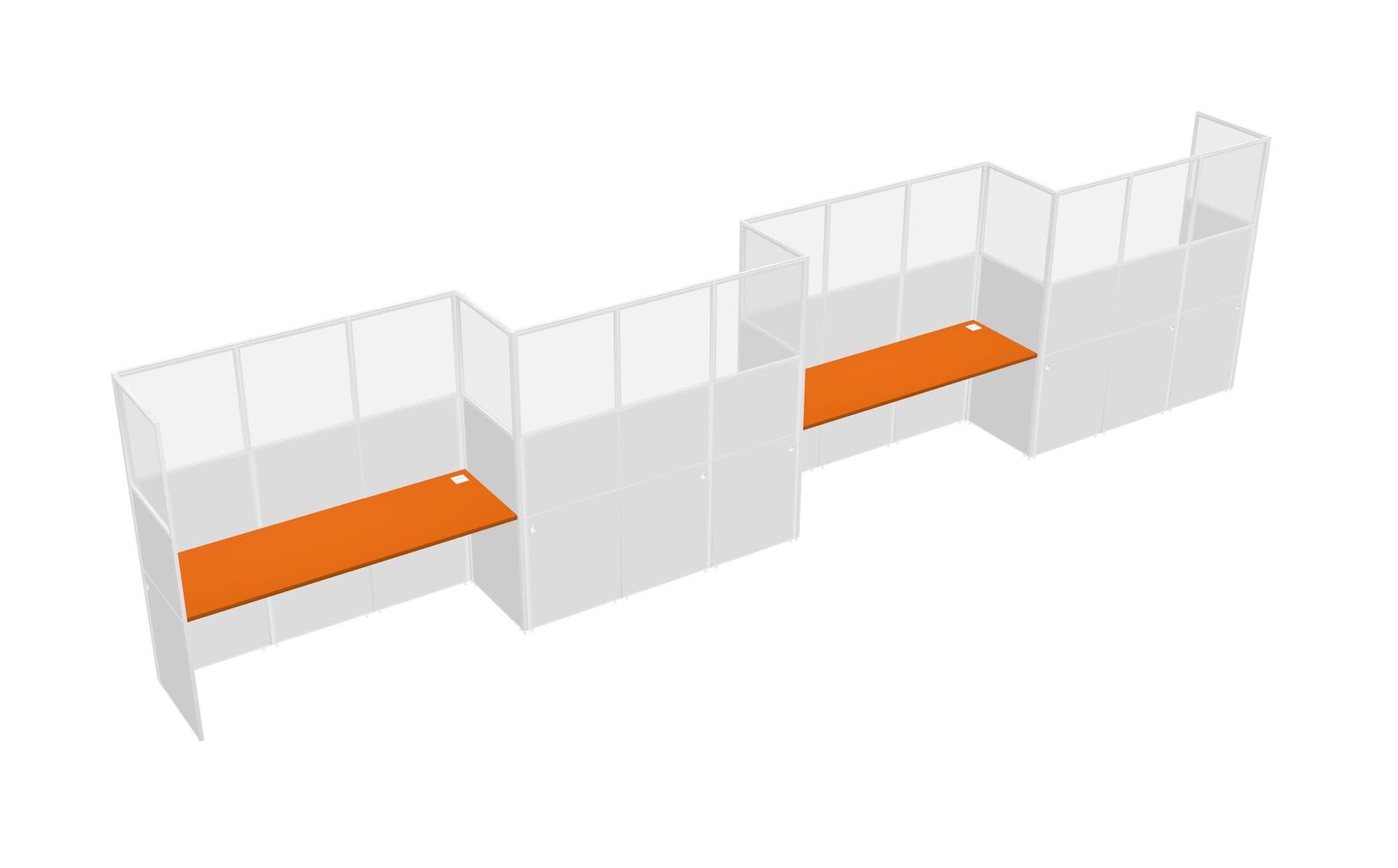 Orange Rectangular Cubicle Workstations For 4 - Zigzag Formation