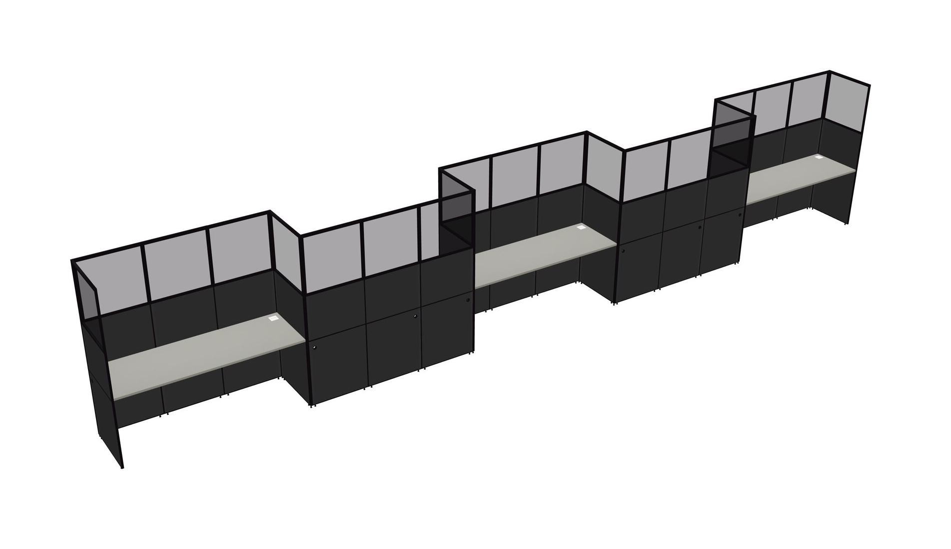 Grey Shadows Rectangular Cubicle Workstations For 5 - Zigzag Formation