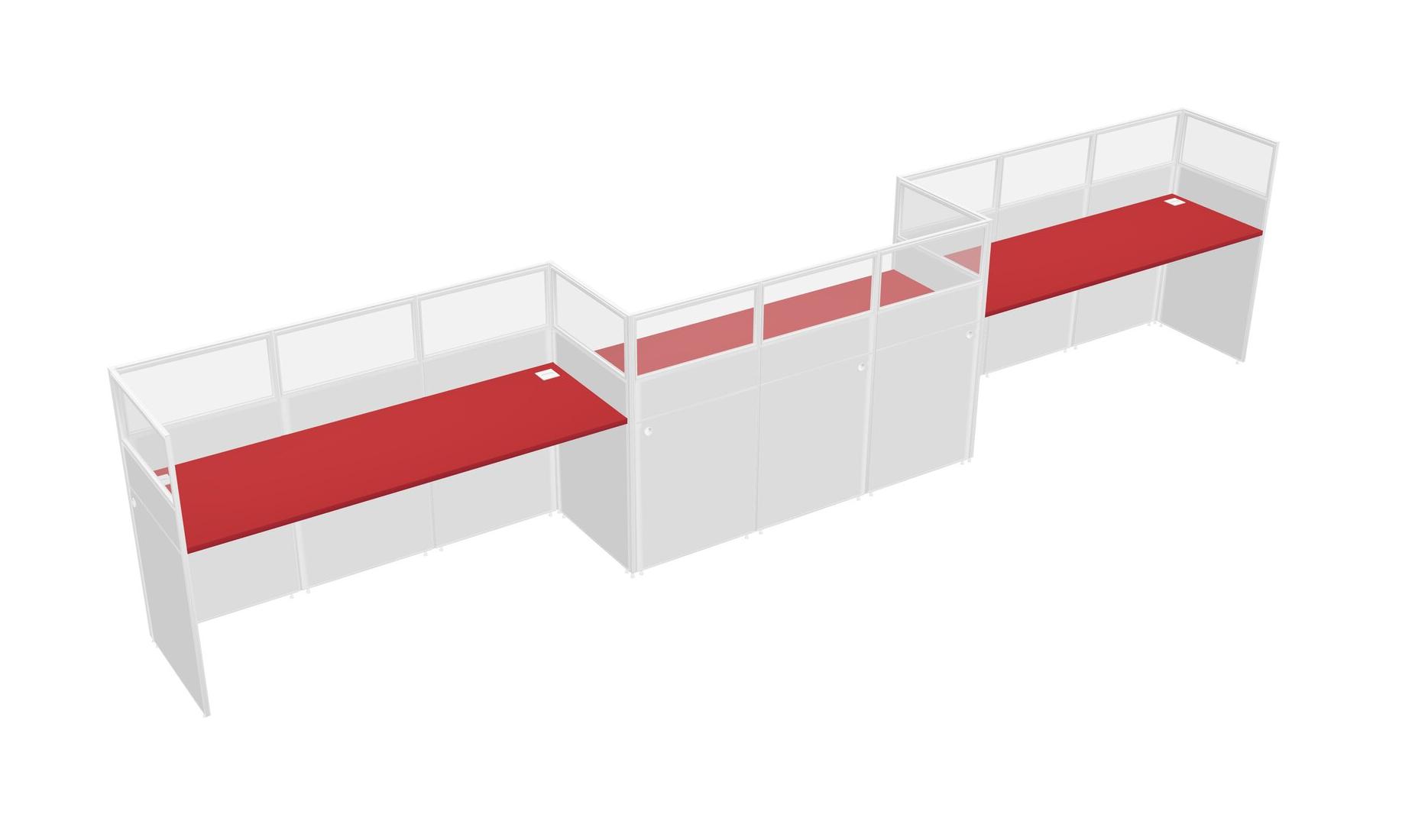 Prism Red Rectangular Cubicle Workstations For 3 - Zigzag Formation