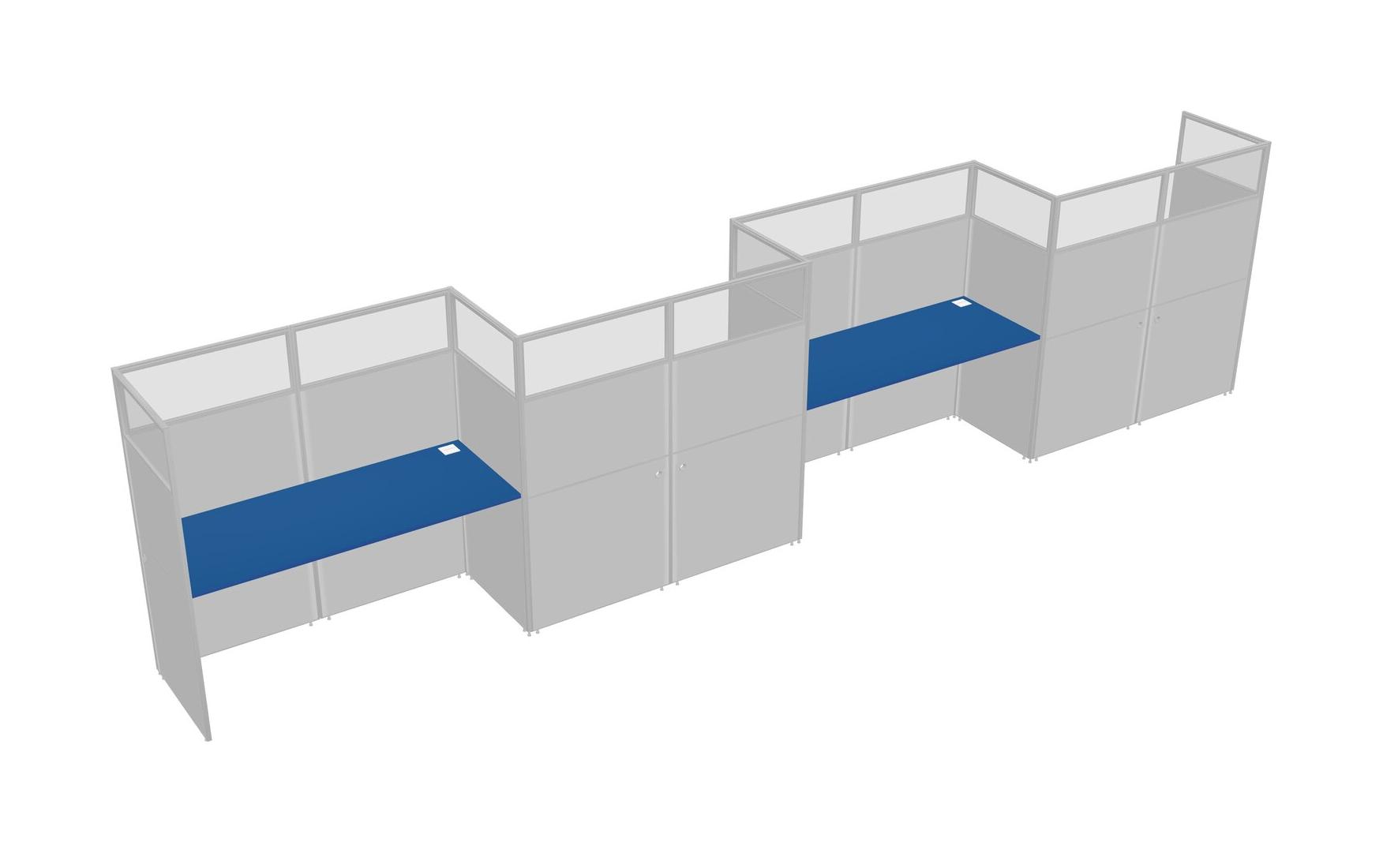 Prism Blue Rectangular Cubicle Workstations For 4 - Zigzag Formation