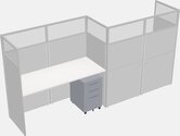White Rectangular Cubicle Workstations For 2 - Zigzag Formation + Grey Metal Mobile Drawers