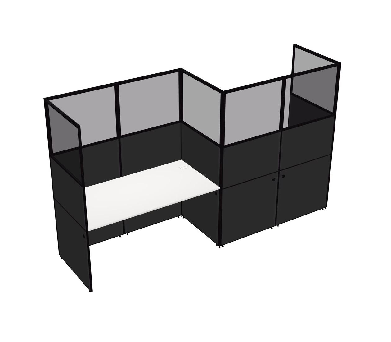 White Rectangular Cubicle Workstations For 2 - Zigzag Formation