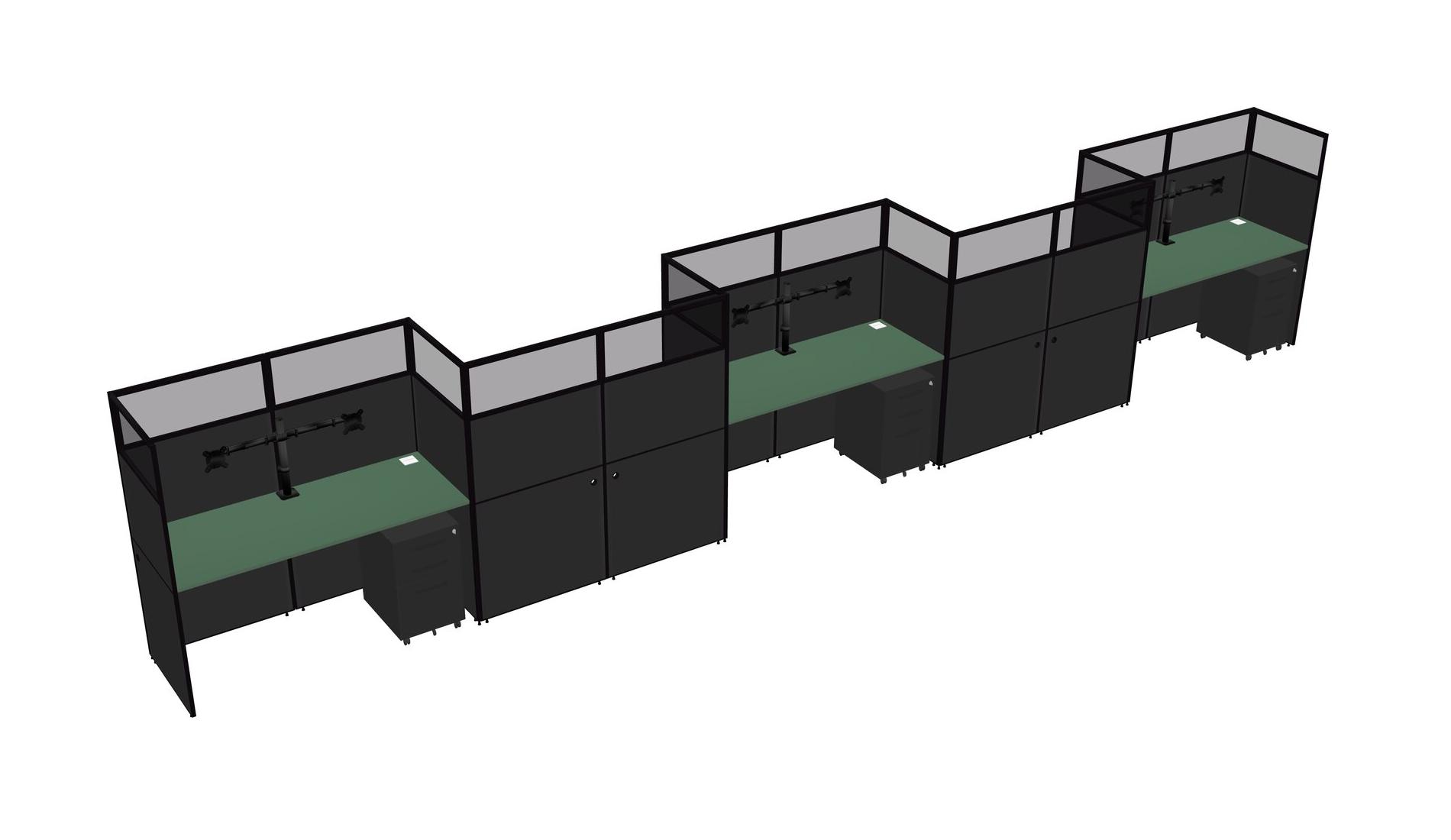 Green Rectangular Cubicle Workstations For 5 - Zigzag Formation + Black Metal Mobile Drawers