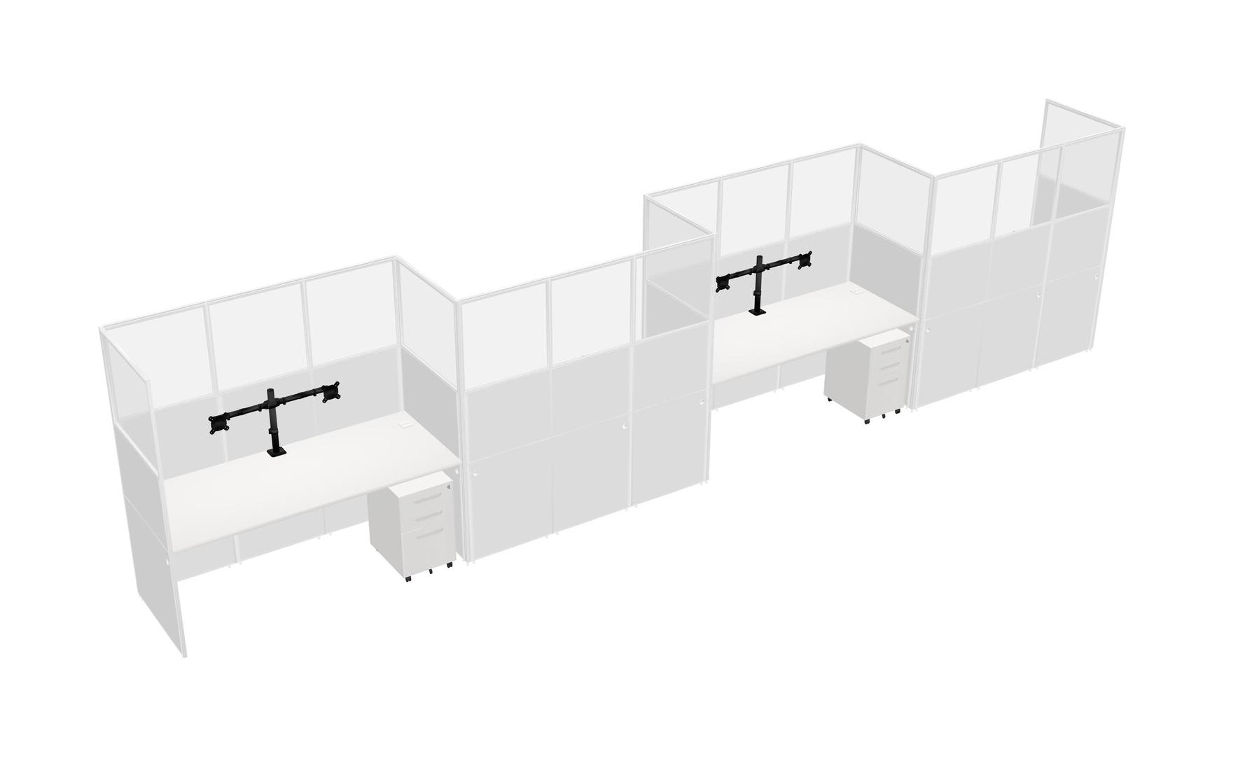 White Rectangular Cubicle Workstations For 4 - Zigzag Formation + White Metal Mobile Drawers