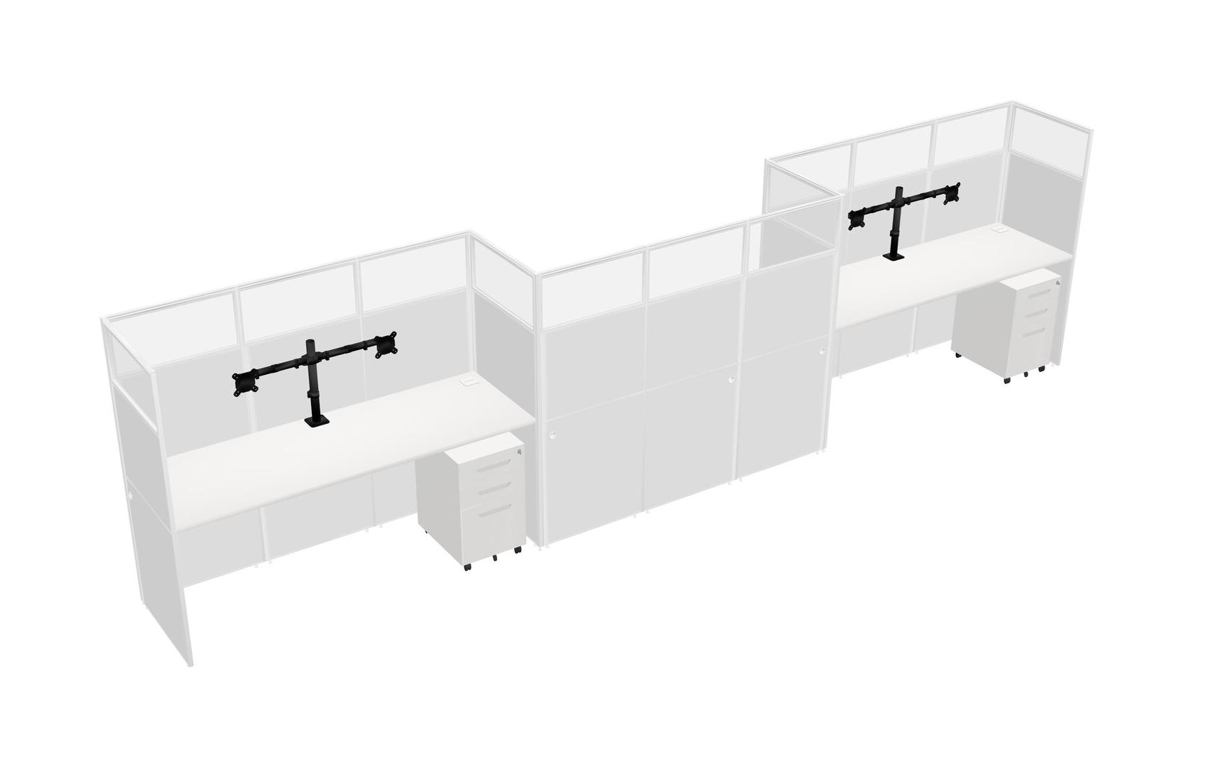White Rectangular Cubicle Workstations For 3 - Zigzag Formation + White Metal Mobile Drawers
