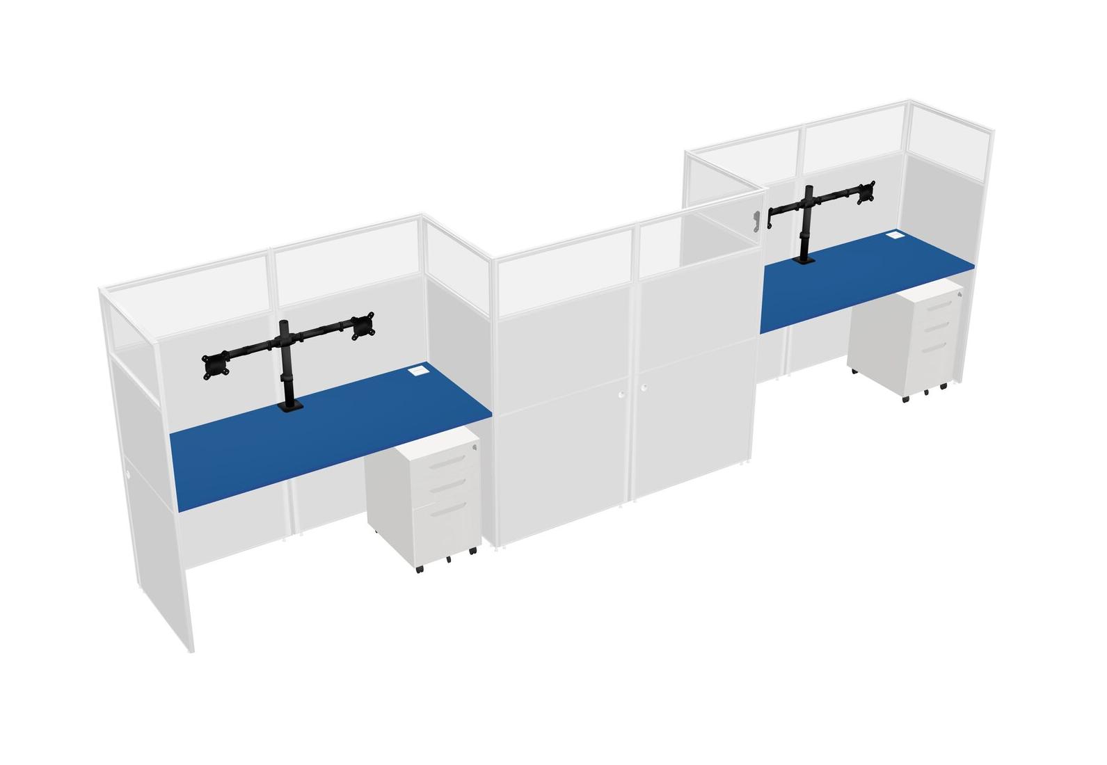 Prism Blue Rectangular Cubicle Workstations For 3 - Zigzag Formation + White Metal Mobile Drawers