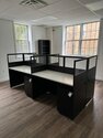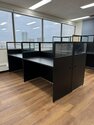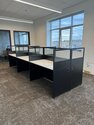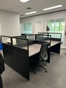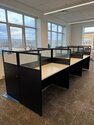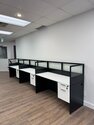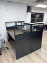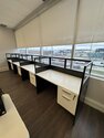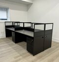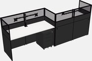White Rectangular Cubicle Workstations For 2 - Zigzag Formation + Black Metal Mobile Drawers