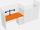 Orange Rectangular Cubicle Workstations For 2 - Zigzag Formation + White Metal Mobile Drawers