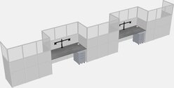 Grey Rectangular Cubicle Workstations For 5 - Zigzag Formation + Grey Metal Mobile Drawers