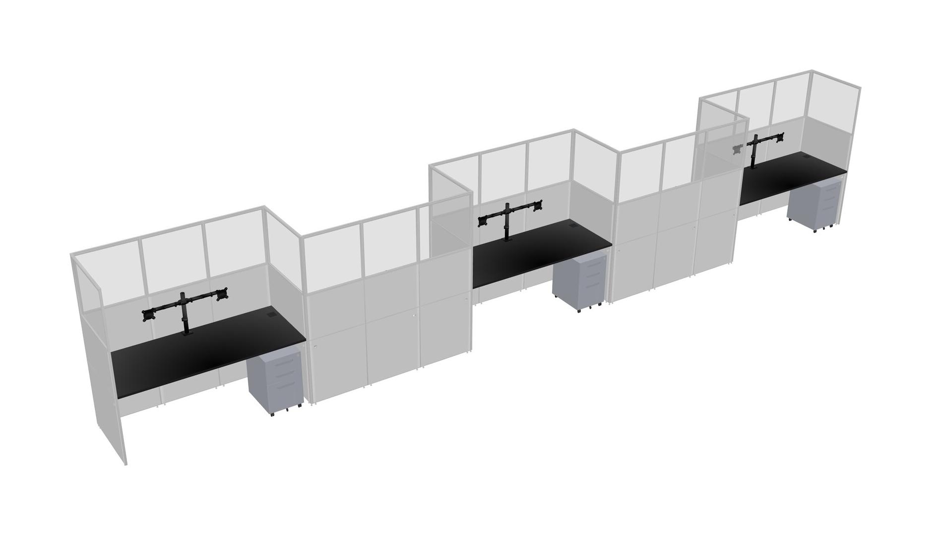 Black Rectangular Cubicle Workstations For 5 - Zigzag Formation + Grey Metal Mobile Drawers