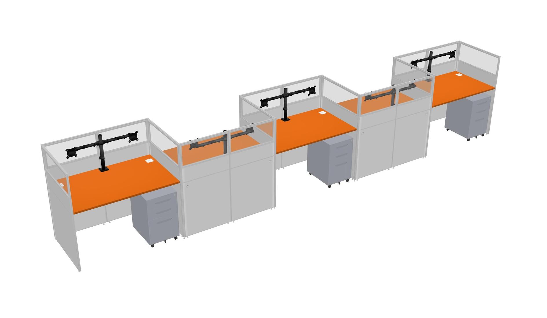 Orange Rectangular Cubicle Workstations For 5 - Zigzag Formation + Grey Metal Mobile Drawers