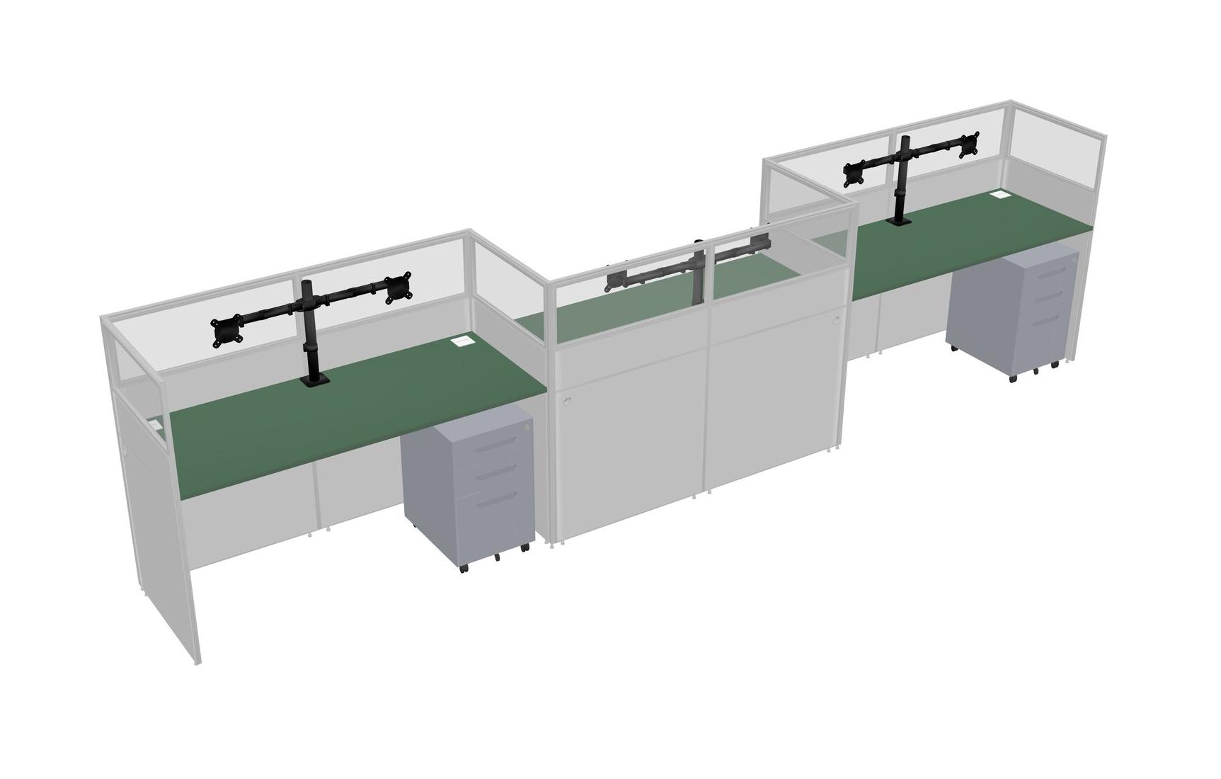 Green Rectangular Cubicle Workstations For 3 - Zigzag Formation + Grey Metal Mobile Drawers