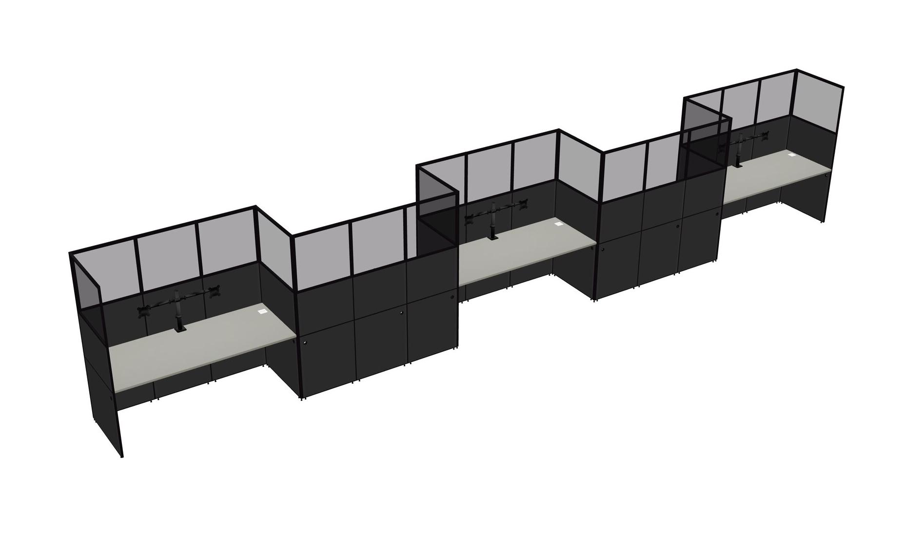 Grey Shadows Rectangular Cubicle Workstations For 5 - Zigzag Formation