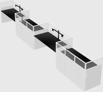 Black Rectangular Cubicle Workstations For 4 - Zigzag Formation