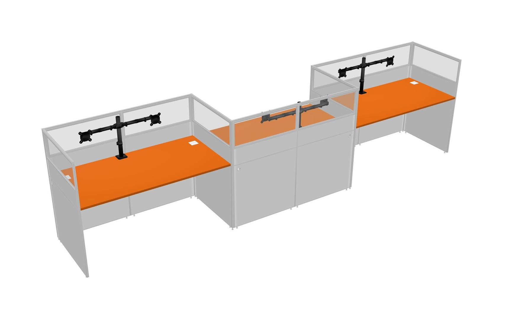 Orange Rectangular Cubicle Workstations For 3 - Zigzag Formation