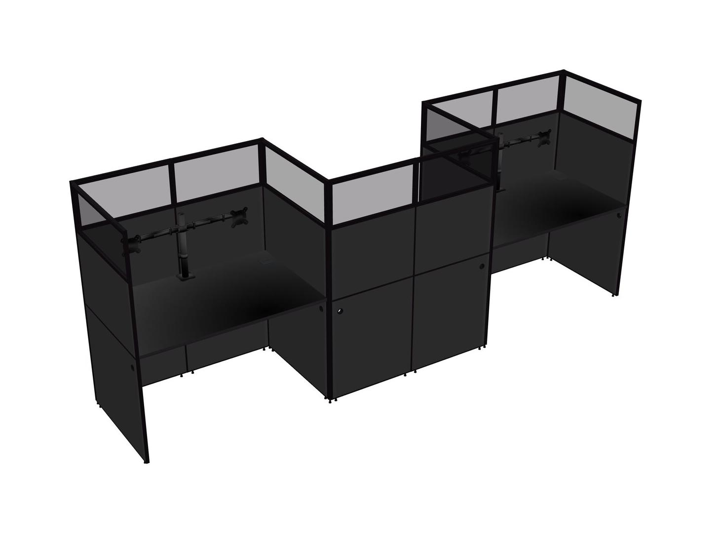 Black Rectangular Cubicle Workstations For 3 - Zigzag Formation