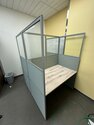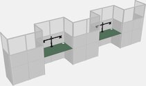 Green Rectangular Cubicle Workstations For 5 - Zigzag Formation